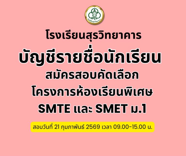 ประกาศโรงเรียนสุรวิทยาคาร ที่ 8/2569 เรื่อง รับสมัครบุคคลเพื่อคัดเลือกเป็นลูกจ้างชั่วคราว ตำแหน่ง ครูอัตราจ้าง จำนวน 2 อัตรา ครูภาษาจีนและครูภาษาฝรั่งเศส ** ดังเอกสารแนบท้าย ...