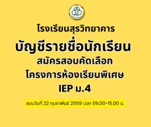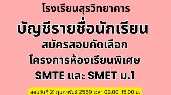 ประกาศรายชื่อผู้มีสิทธิ์สอบคัดเลือกเข้าเรียนต่อ โครงการห้องเรียนพิเศษ ปีการศึกษา 2569